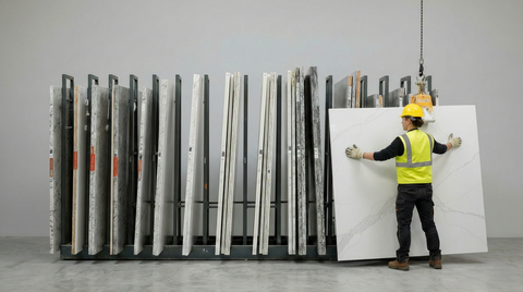 Bis zu 10 % und 40 % kristalliner Kieselsäure | 99 % wiederverwendetes Wasser | 100 % erneuerbare elektrische Energie | Mindestens 20 % recycelte Materialien